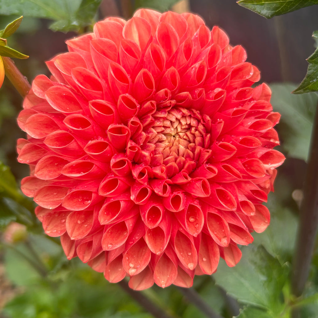 Orange fans - this is for you! A bright orange enormous ball! Bigger than all the other ball dahlias I have.