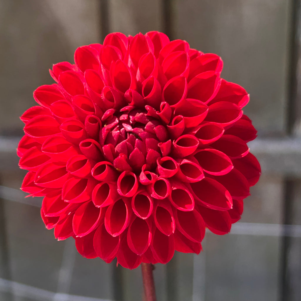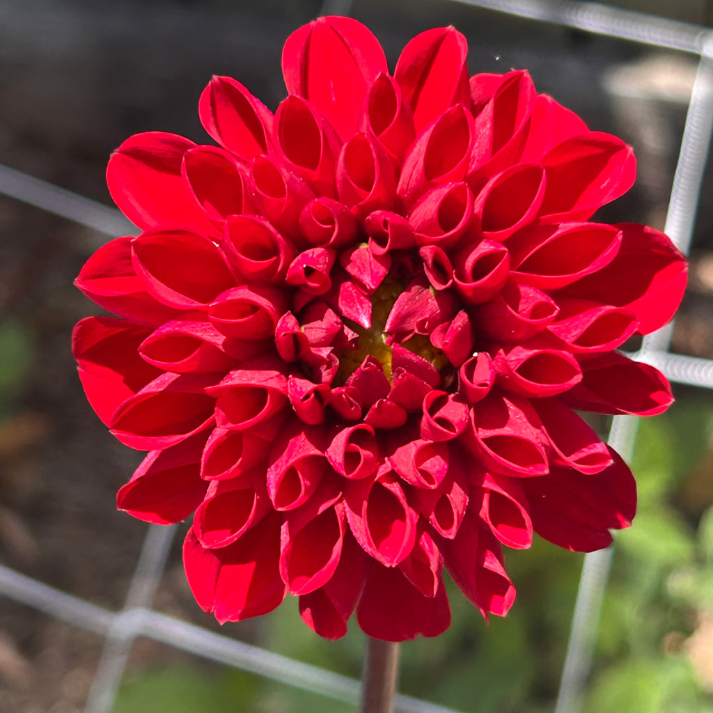 My first flower of the 2025/26 season. A delightfully bright red ball type flower. This was previously sold as Mystery Ball 79, but now it's flowered I know what it is.