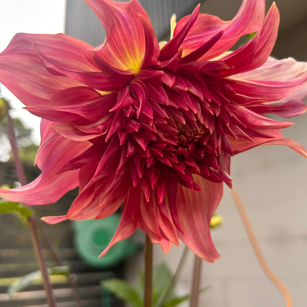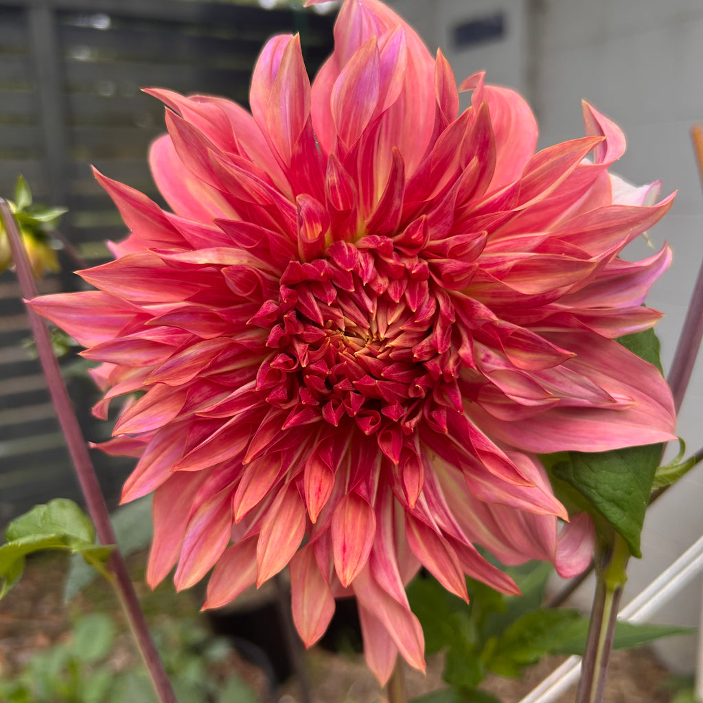 Penhill Watermelon is so far my biggest flower. It's a squiggly muddle of floppy lacy petals in shades of pastel orangey pink.